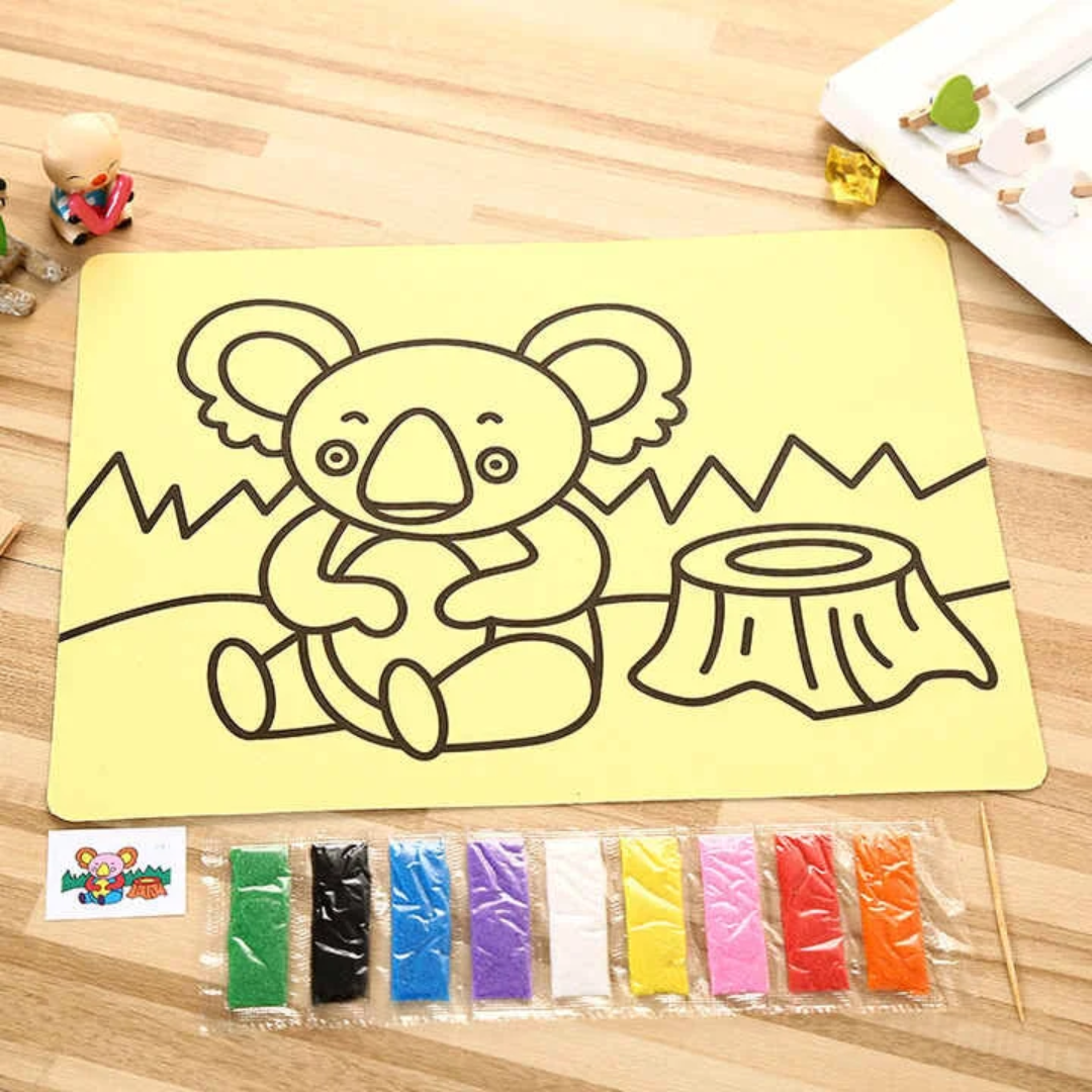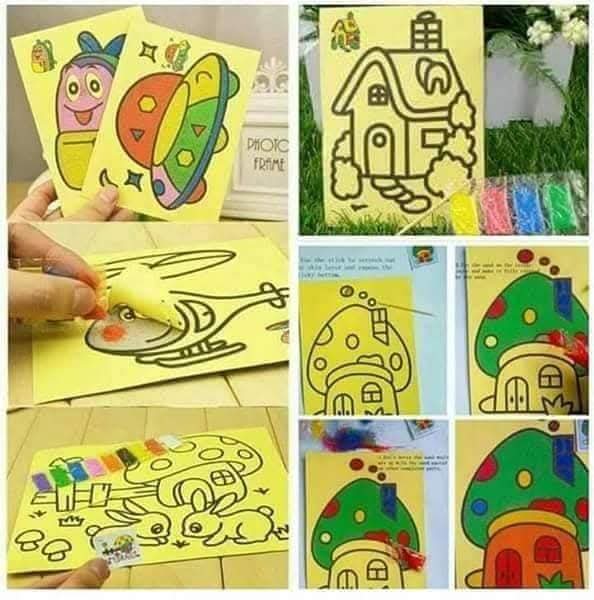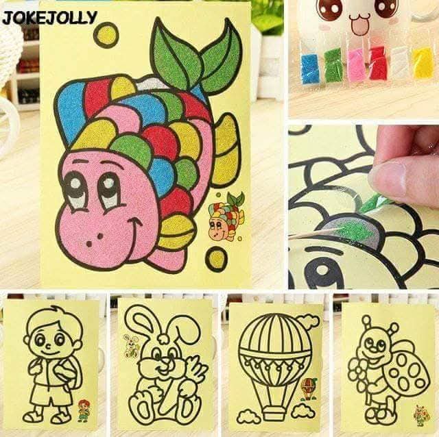 التلوين بالرمل الممتع للاطفال متوفر باشكال مختلفه وجميله للبنات والاولاد وممكن تكون هديه بسيطه للاطفال