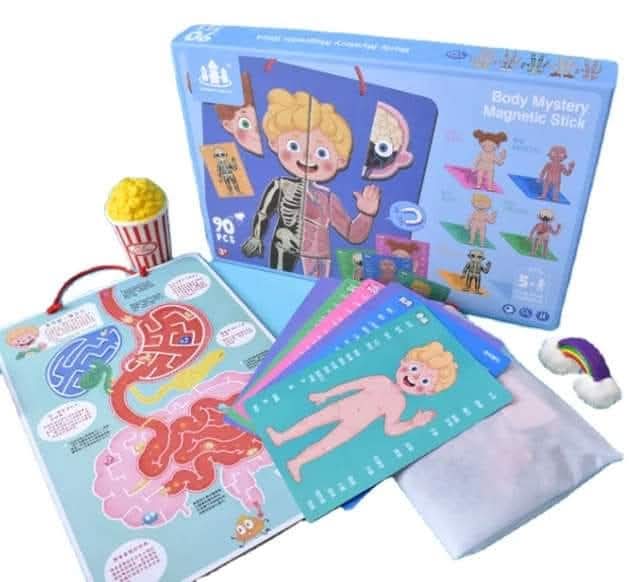 التعليم مش حفظ وتعقيد لأولادنا لعب عيال مهمته يغير التعليم للعب 🥳وفهم ☺️ وحب 🤩 وحبابينا اللي طالعين سنه رابعه وهيتعرفوا على أجزاء الجسم وتشريحه وفرنالهم وسيله جديده بازل التشريح المغناطيسي الاطفال هتتعرف علي اجزاء الجسم وكمان طبقات الجسم الداخلية وهيجمع كل شكل بناء علي اللوحه الخاصه بكل طبقه من طبقات الجسم وكمان يقدر يجمعهم علي البورد المغناطيسي الكبير وهي متعلقة على الحائط العلبه فيها شخصيات ولد وبنت