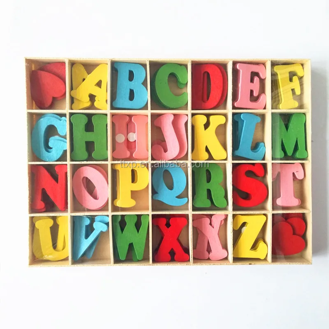 حروف إنجليزية خشب تكرار الحرف مرتين لتعليم تكوين الكلمات والجمل