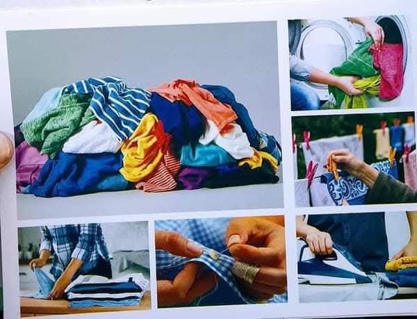 النموذج اللى ف الصوره لموضوع الملابس من جزئين جزء عباره عن مشاهد متعلقه بموضوع الملابس وجزء عباره عن العناصر المتعلقه بموضوع الملابس