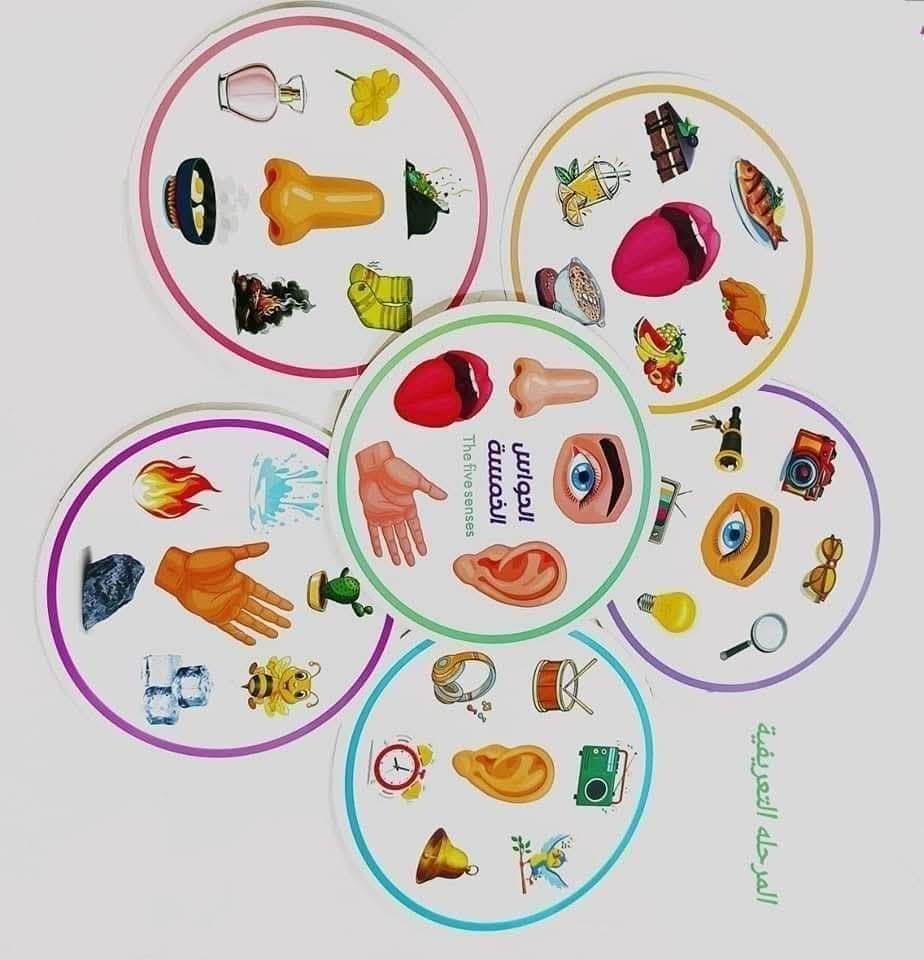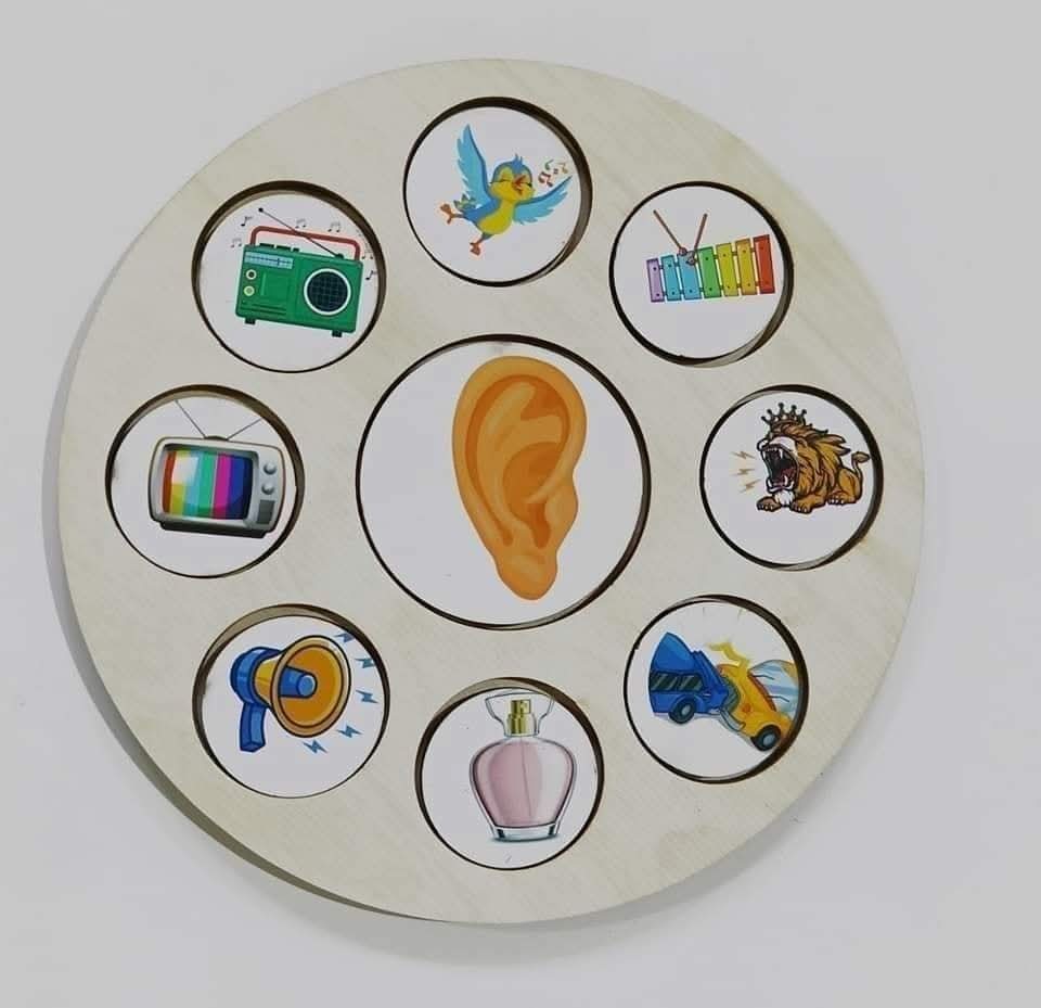 الدائرة الخشبية حيكون معاها أكثر من 70 شكل 🥰🥰 دائري لعناصر مختلفة يختار الطفل منها العناصر المناسبة لكل حاسة وكمان ممكن نحط العناصر والطفل يختار الحاسة الصحيحة بيهم . 🤗🤗