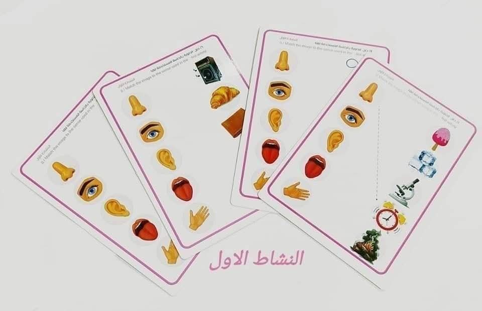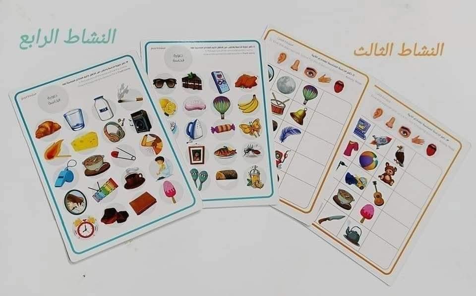 وتنقسم الأنشطة إلى ٦ أنشطة مختلفة 🥳🥳🥳 تحتوي على عدد كبير من العناصر التي تساعد الطفل على التفكير والتطبيق وده كله حيساعد على معرفة هل الطفل فعلاً عرف الحاسة ولا لاء . الأنشطة مختلفة وكمان العناصر كتيررررررررره 🚦⛽📢🥁🎺🎙️📻🪗🎥🎧🖼️