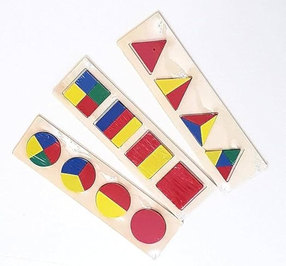 علّم طفلك الأشكال الهندسية، الألوان، ومفاهيم الكسور الأساسية بطريقة تفاعلية ومحسوسة مع هذه الألغاز الخشبية الملونة. مثالية لـ: