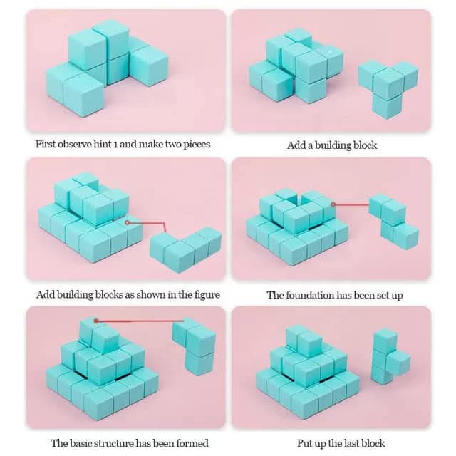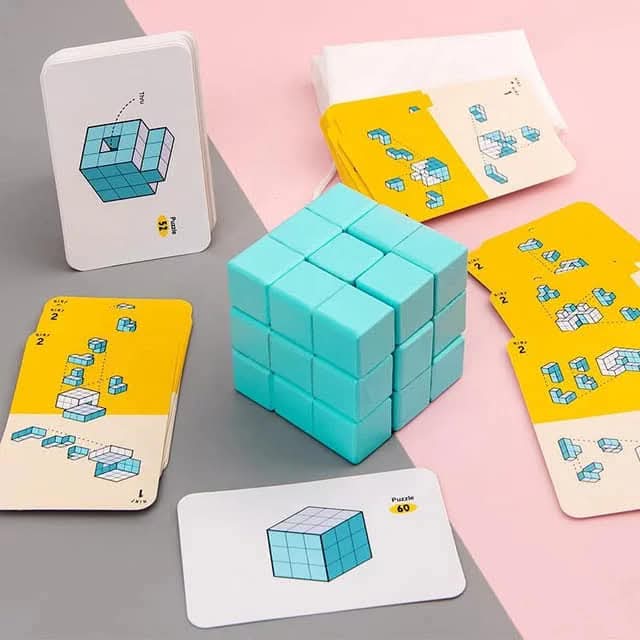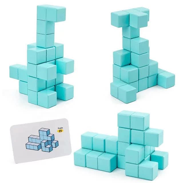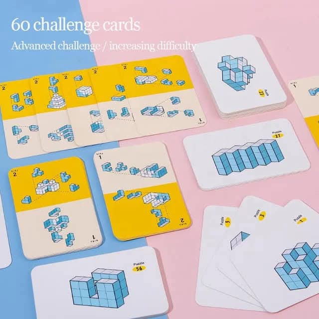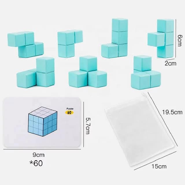 عايزين حبه تركيز نقوي الإنتباه نكون أشكال نتعلم نكون وكمان نبتكر أشكال 3d ونتعلم التوازن وتنفيذ الأنماط مكونه من 7 قطع مجسمه بزوايا مختلفة و56 رسمه مختلفة