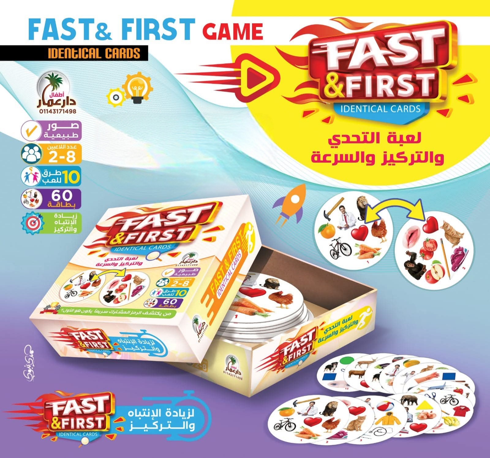 💡 هنلاقى فيها 60كارت وكل كارت يحتوى على 8 أشكال وبين كل كارت والتانى شكل واحد مشترك